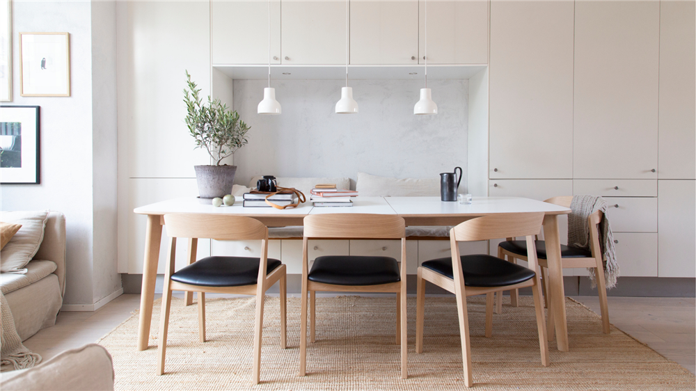 Klassische Esszimmerstühle aus Holz – insbesondere aus Eiche – gehören nach wie vor zu den beliebtesten Optionen. Sie verleihen dem Raum Wärme und Charakter und bekommen mit der Zeit eine schöne Patina. Sie finden Modelle wie den Esszimmerstuhl J39, auch bekannt als „Folkestolen“, und den J18, der sich an die dänische Möbeltradition anlehnt.