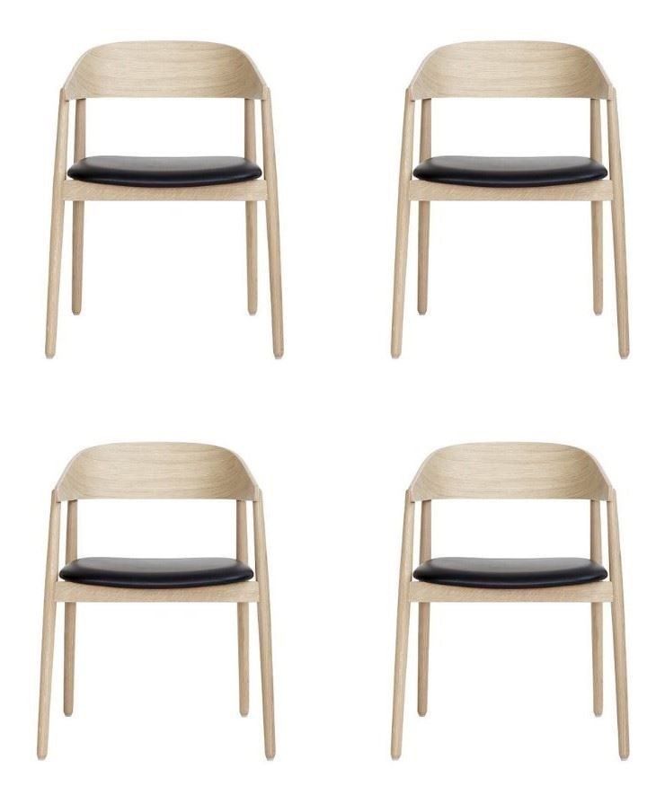 Andersen Furniture AC2 Stuhl SH: 43,5 cm 4er-Set – Lackierte Eiche/Schwarzes Leder