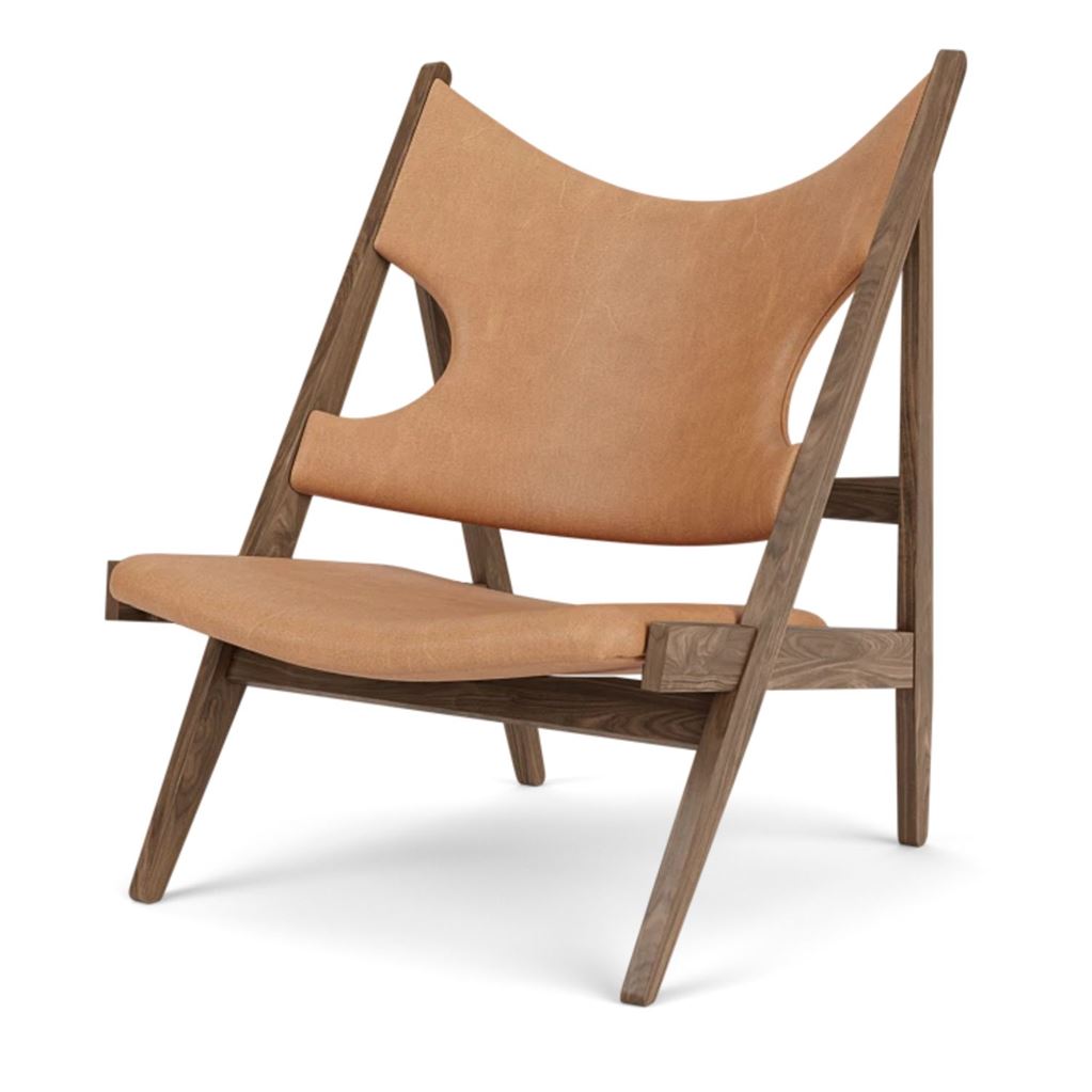 Audo Copenhagen Strick-Loungesessel – Walnuss/Dunes Camel Leder