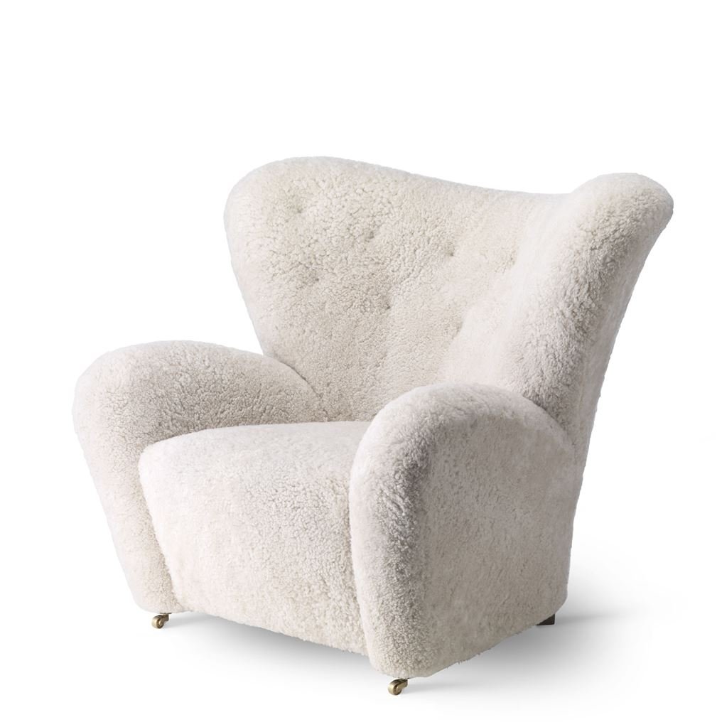Audo The Tired Man Sessel SH: 38 cm – Schaffell Mondlicht/NatureicheGepolsterter Sessel „The Tired Man“, entworfen von Flemming Lassen im Jahr 1935. Der Sessel