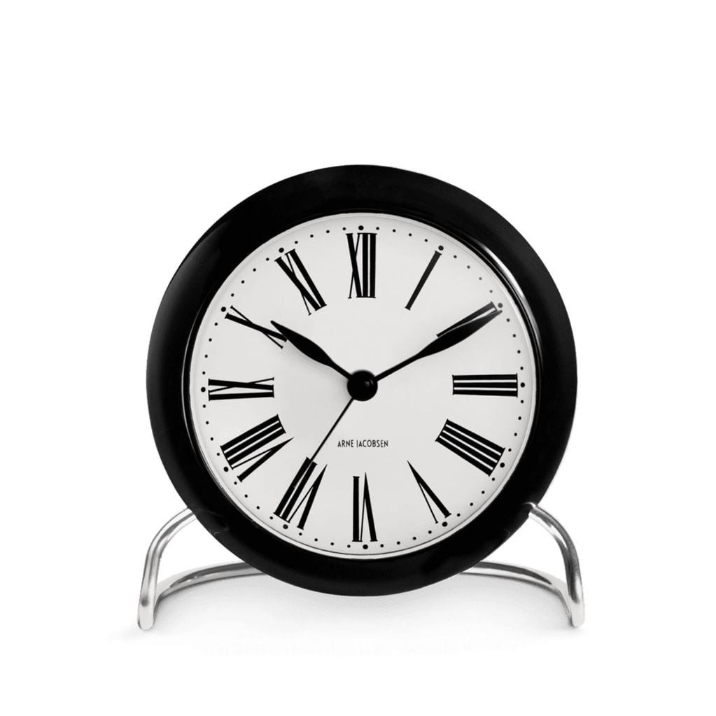 Arne Jacobsen Tischuhr im römischen Stil, Ø: 11 cm – Schwarz/Weiß
