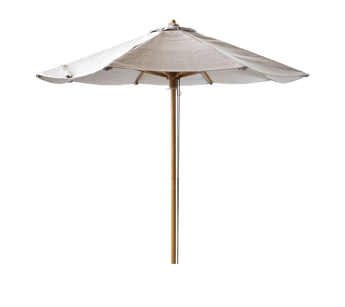 Schöner und klassischer Sonnenschirm von Cane-line. Der Sonnenschirm wurde mit dem Ziel entworfen, ein Produkt zu schaffen, das zeitlos, klassisch und modern zugleich ist. Mit diesem Sonnenschirm können Sie sich auf sehr schöne Weise vor der Sonne schützen und die heißen Sommertage genießen. Die schöne Farbe des Sonnenschirms und die Wärme des Teakholzes sehen besonders schön aus, wenn die Sonnenstrahlen auf den Sonnenschirm treffen. Der Sonnenschirm ist mit einem Kordelzug ausgestattet und wasserabweisend. Darüber hinaus ist der abnehmbare Stoff waschbar. Der Sonnenschirm ist UV-beständig und aus strapazierfähigem und witterungsbeständigem Material gefertigt.
