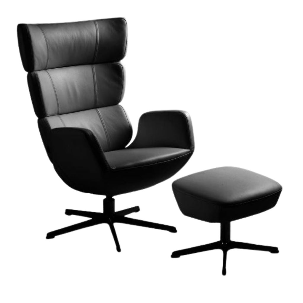 Der Turtle Sessel von Conform hat ein elegantes Design und wurde von Lenka Teilmann entworfen. Der Stuhl bietet einen sehr guten Sitzkomfort. Der Stuhl bietet zahlreiche Verstellmöglichkeiten, damit Sie perfekt sitzen. Er verfügt über eine verstellbare Rückenlehne und Kippfunktion. Der Sessel ist mit Fantasieleder gepolstert, die Beine bestehen aus Aluminiumdruckguss. Bei dem Sessel handelt es sich um einen Drehstuhl mit Rückdrehfunktion, sodass sich der Stuhl immer wieder in seine Ausgangsposition zurückdrehen lässt. Analin-Leder ist ein weiches Leder, in dem man bequem sitzen kann. Zum Sessel gehört ein passender Fußhocker.