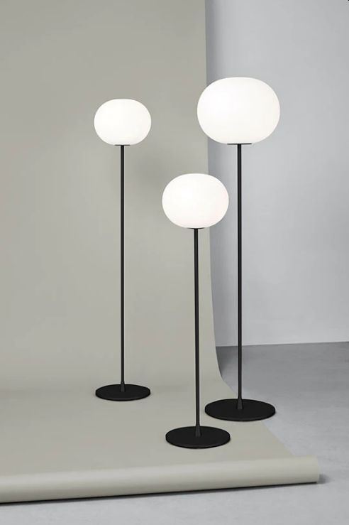 Flos Glo-Ball Floor 3 H: 185 cm - Schwarz Stehleuchte, die in jedem Raum für schöne Beleuchtung sorgt. Die Stehleuchte hat einen mundgeblasenen Opalglasschirm Mehr Lesen ...