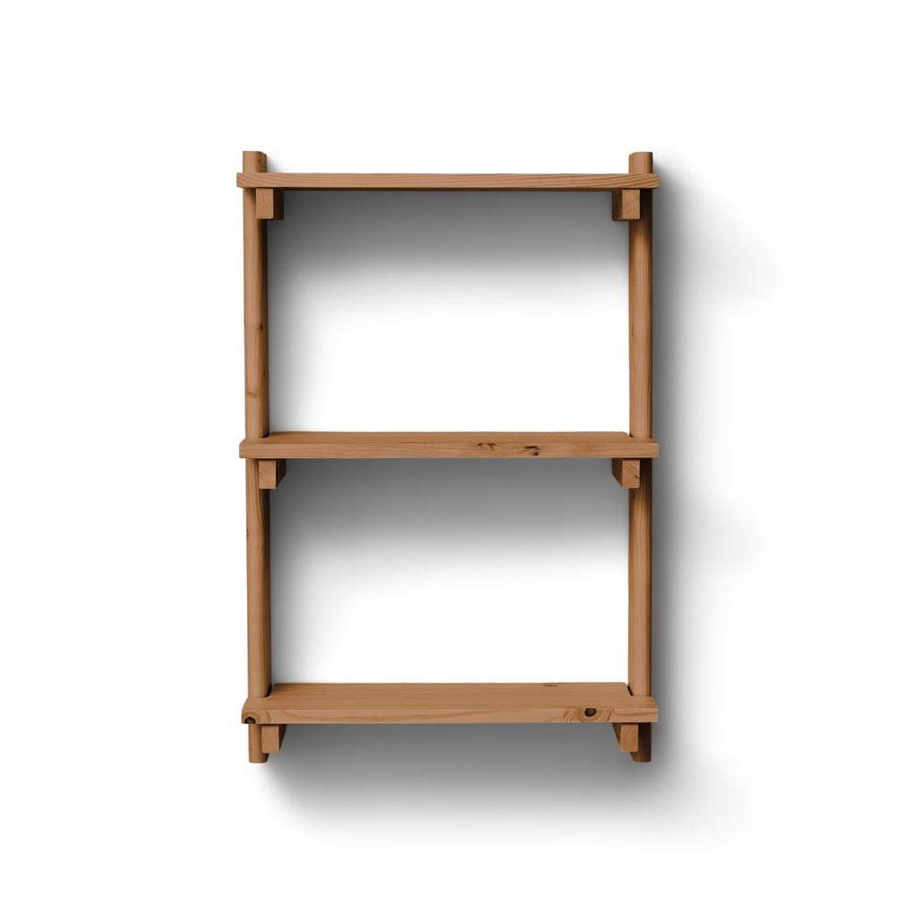 Das Regal besteht aus Weißkiefer, einem Material mit warmer und heller Ausstrahlung, das im Vergleich zu traditionellen, langsam wachsenden Holzarten eine nachhaltigere Wahl darstellt. Die Oberfläche ist mit einem ultramatten Lack behandelt, der das Holz schützt und seine natürliche Maserung bewahrt.