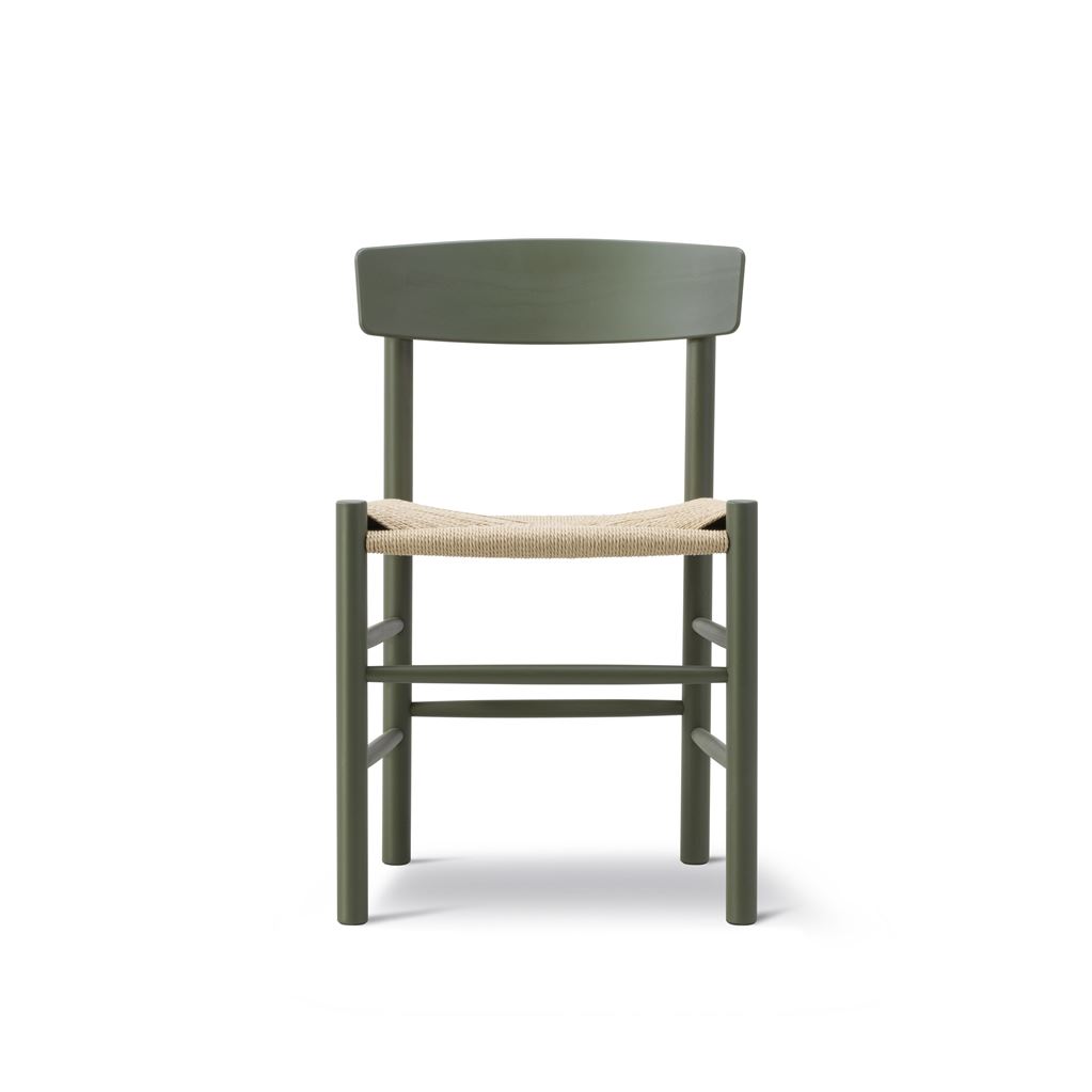 Fredericia Furniture 3239 J39 Mogensen Esszimmerstuhl SH: 46 cm – Khakigrüne Buche/Naturgeflecht