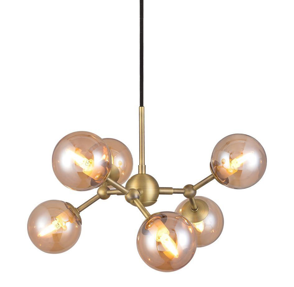 Diese wunderschöne und einzigartige Pendelleuchte von Halo Design besticht durch ihr klares Design. Entworfen von Emanuele Patton, kommt die Atom-Pendelleuchte besonders gut zur Geltung. Die Materialwahl harmoniert perfekt mit dem ästhetischen Design und schafft so eine wunderschöne, dekorative Beleuchtung für jeden Raum. Dank der flexiblen Arme lässt sich die Leuchte individuell ausrichten und der Lichtstrahl nach Belieben lenken. Das edle bernsteinfarbene/messingfarbene Glas erzeugt zudem ein faszinierendes Farbspiel. Ob im Flur, in der Küche oder im Wohnzimmer – diese Pendelleuchte setzt einen stilvollen und einzigartigen Akzent in jedem Interieur. Bitte beachten Sie, dass für die Pendelleuchte LED-Leuchtmittel empfohlen werden. Es werden 6 Leuchtmittel benötigt, die nicht im Lieferumfang enthalten sind.