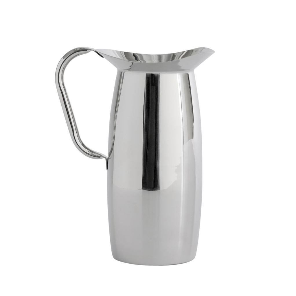 Wunderschöner Krug von Hay. Der elegante indische Stahlkrug von Hay besticht durch sein schlichtes und funktionales Design. Er wird in Indien gefertigt und hat eine wunderschöne, glänzende silberne Oberfläche. Das schlichte Design entspricht perfekt den aktuellen Trends, und die ansprechende Form verleiht ihm einen Hauch von Retro-Charme.