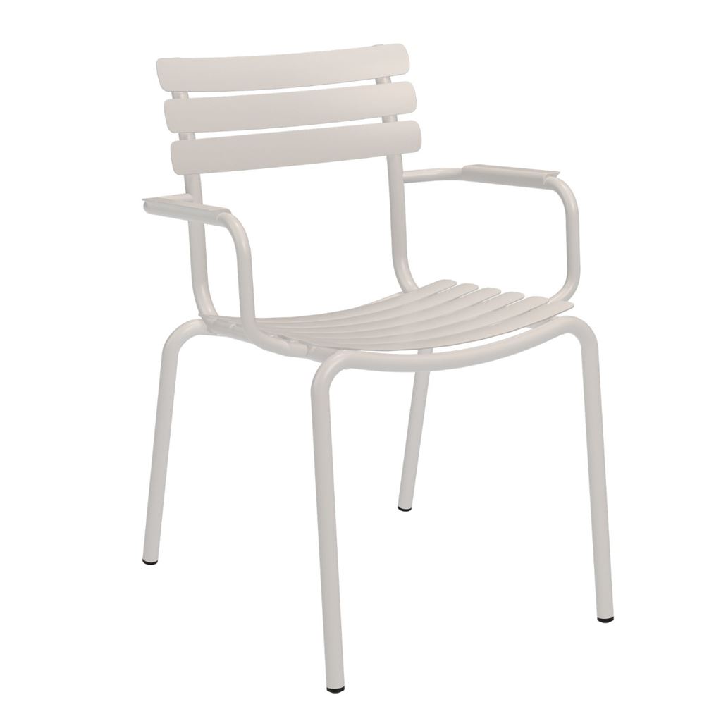 De buede aluminiumslameller er formet, så de sikrer høj siddekomfort og giver stolen et blødt og indbydende udtryk.