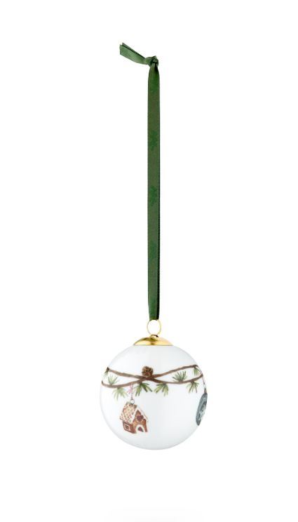Die Weihnachtskugel 2023 von Hammershøi Christmas hat einen Durchmesser von 6 cm und ist eine Hommage an das authentische, nostalgische Weihnachtsfest – verziert mit einem grünen, geflochtenen Weihnachtsherz, einem Rentier, einem Weihnachtsschwein mit hellblauer Schleife und einem lila Pilz. Vielleicht besitzen Sie schon eine oder mehrere Hammershøi Weihnachtskugeln aus den vergangenen Jahren? Lassen Sie sie zusammen für weihnachtliche Stimmung im Fenster sorgen oder hängen Sie sie an Zweige, die in einer Vase stehen. Die bezaubernden Weihnachtsmotive wurden im Laufe der Jahre von der Künstlerin Rikke Jacobsen kreiert, die dem klassischen Hammershøi-Geschirr jedes Jahr einen neuen Hauch von Weihnachtszauber verleiht. Heute enthält Hammershøi Christmas genügend Teile für ein komplettes Set für alle Dezembermahlzeiten, vom Brunch und Mittagessen bis zum Weihnachtsessen. Der Ball wird mit einer schönen grünen Seidenschnur geliefert, sodass Sie ihn einfach aufhängen können.