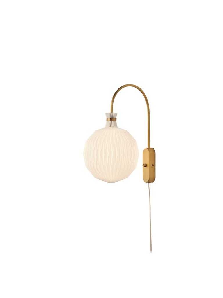Modell 201 ist eine raffinierte Wandleuchte, bei der ein schlanker Messingarm auf den ikonischen, handgefalteten Schirm des Modells 101 im Miniaturformat trifft. Der schlichte Wandbecher aus Messing rundet den Ausdruck ab und schafft ein harmonisches Ganzes, in dem Funktionalität und Ästhetik verschmelzen.