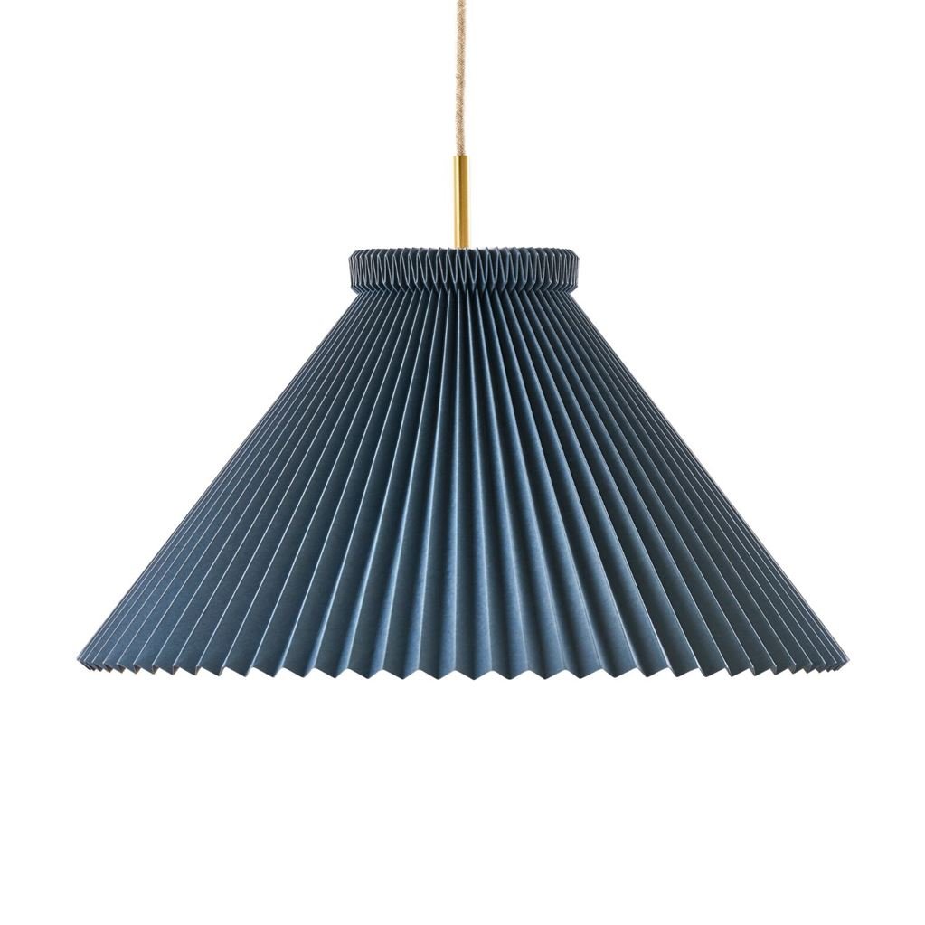 Relaunch der ikonischen handgefalteten Pendelleuchte Modell 1, entworfen von Tage Klint im Jahr 1942. Die Pendelleuchte wird mit einem Schirmständer, Lampenschirm, Messingaufhängung und Leinenkabel geliefert. Der Lampenschirm ist nach den bekannten Techniken gefaltet und besteht aus einer Folie, die aus hartem PVC hergestellt ist. Das Material ist UV-beständig, schwer entflammbar und hat eine antistatische Oberfläche. Modell 1 ist ein Klassiker und verschönert jedes klassische Zuhause. Die Pendelleuchte hat ein 300 cm langes Kabel, Leuchtmittel sind nicht im Lieferumfang enthalten.