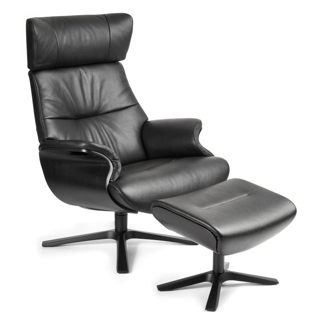 Conform Timeout Large Lænestol og Skammel m. Swingback - Sort Fantasy Læder/Sortbejdset Eg/Sort Aluminium
