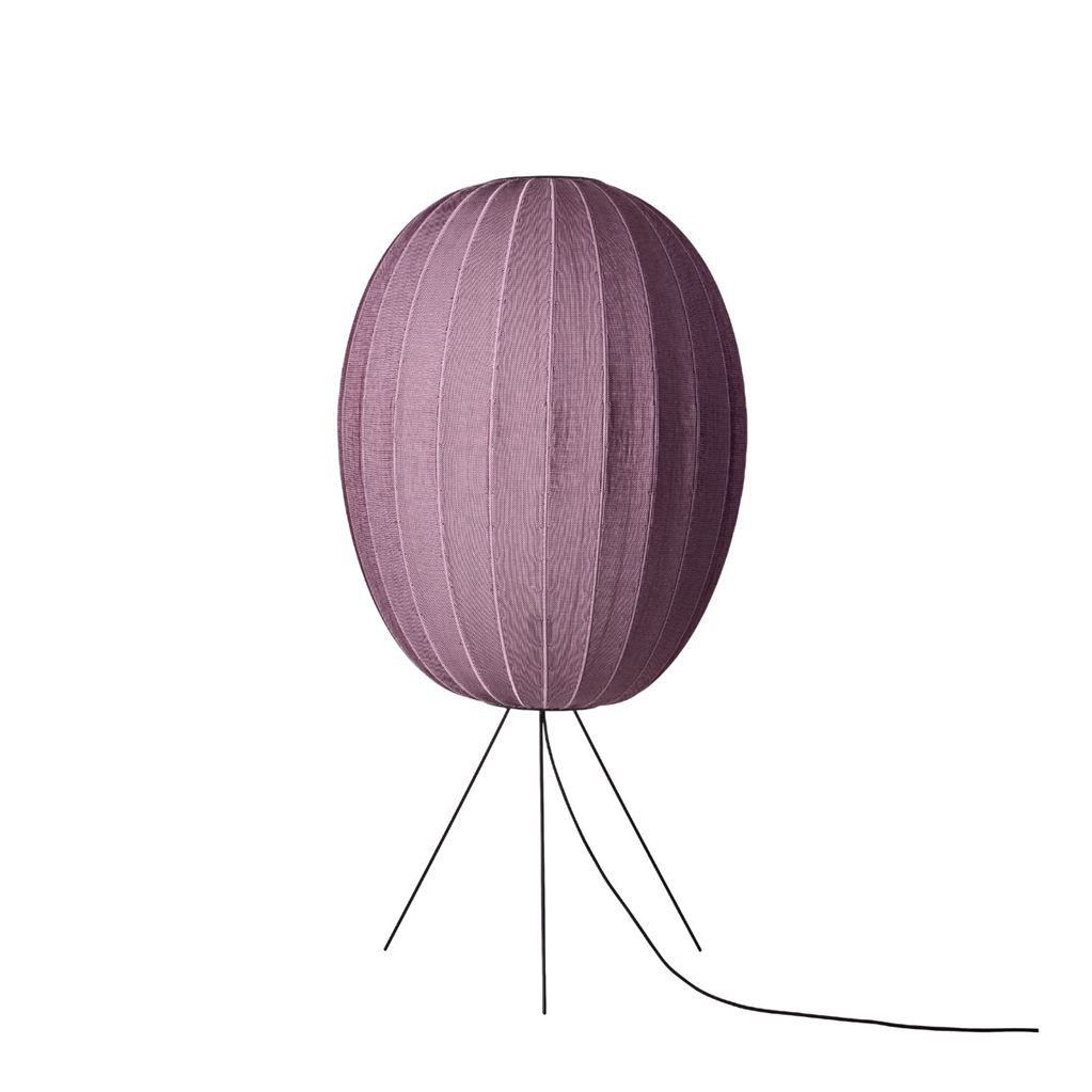 Wunderschöne Stehleuchte von Made By Hand, inspiriert von der klassischen Reispapierlampe. Die Leuchte hat einen modernen, skandinavischen Look und spendet angenehmes Licht. Der Lampenschirm ist aus Strick, wodurch das Licht durch das Garnmuster verteilt wird und die Leuchte ein charakteristisches und dekoratives Aussehen erhält. Obwohl Stricken ein altes Handwerk ist, wurde es bisher nicht für moderne Designleuchten verwendet, daher war dies das grundlegende Ziel von Made By Hand. Die drei dünnen, schwarzen Beine der Leuchte bilden einen schönen Kontrast zum weichen Lampenschirm, der dem Interieur einen eleganten und stilvollen Ausdruck verleiht.