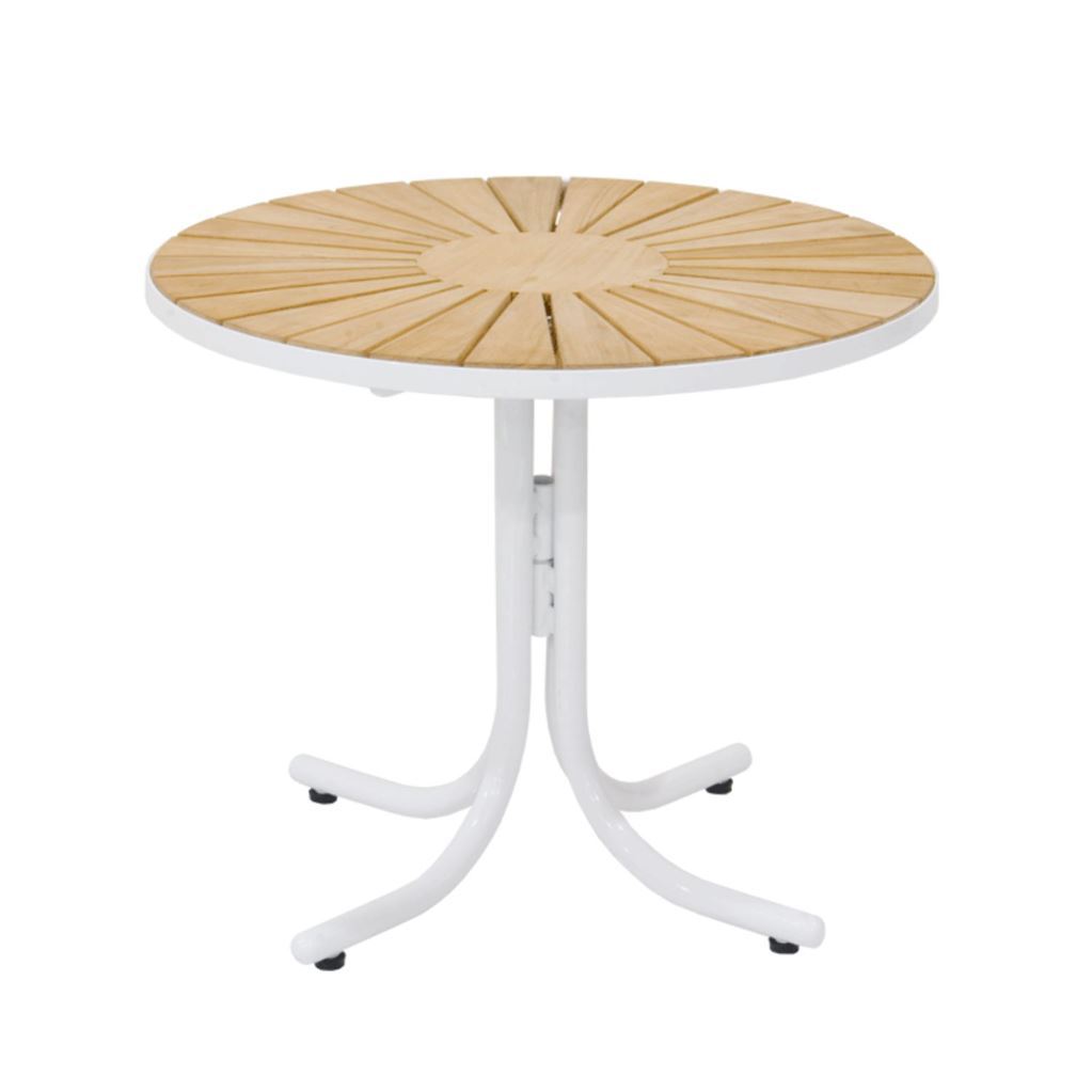 Wie immer besteht die Tischplatte aus nachhaltigem, indonesischem Plantagen-Teakholz, während das Gestell aus robustem, pulverbeschichtetem Aluminium gefertigt ist – für Stil und Langlebigkeit.