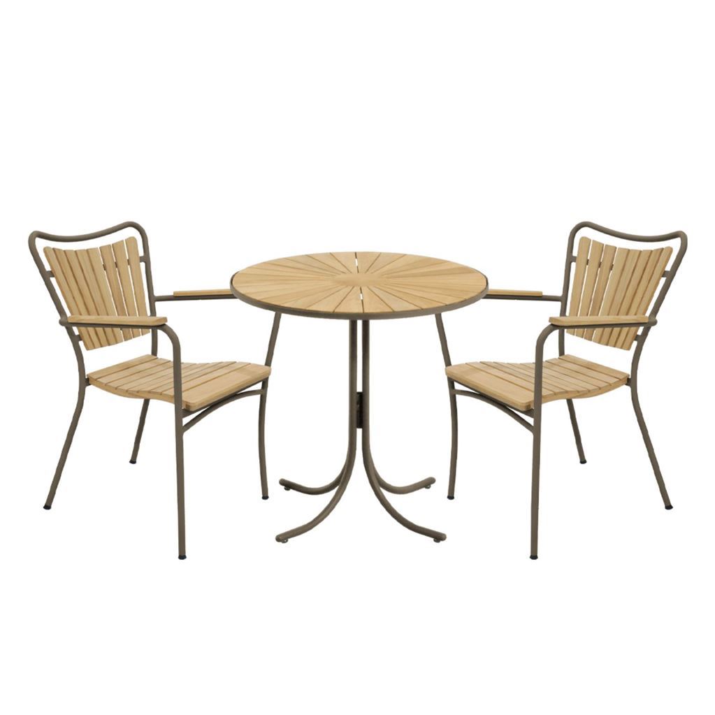 Mandalay Marguerit Cafétisch Ø: 70 cm inkl. 2 Gartenstühlen Gartenmöbel-Set - Teak/Mokka