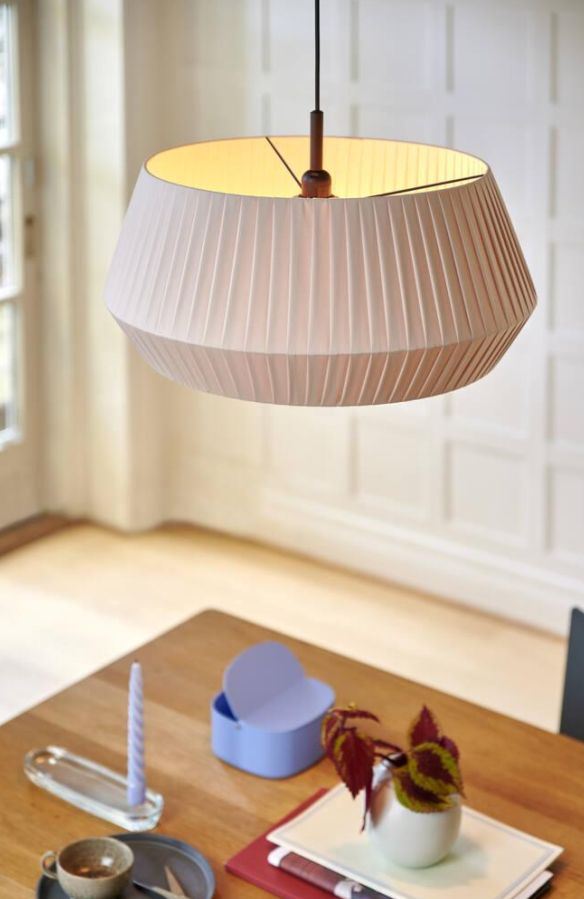 Die Dicte-Lampenserie von Nordlux wurde vom dänischen Designteam Says Who entworfen. Der Lampenschirm aus Baumwolle ist so konzipiert, dass er ein weiches und diffuses Licht spendet, das sich besonders für die Beleuchtung des Esstisches oder einer Ecke des Wohnzimmers eignet. Die Dicte-Leuchte ist als Pendelleuchte, Wandleuchte, Tischleuchte und Stehleuchte erhältlich.