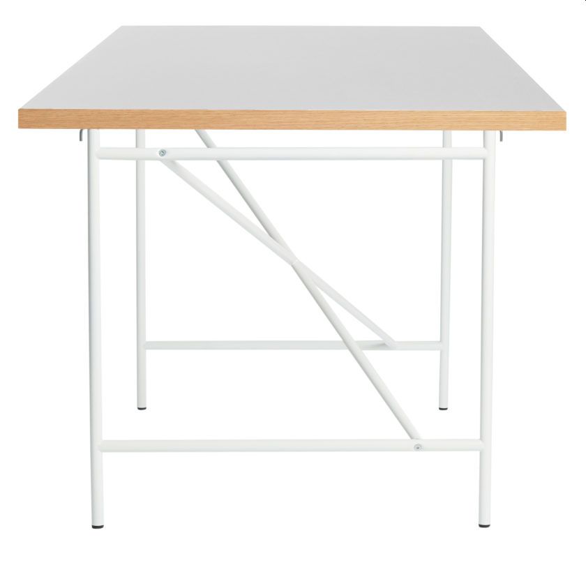 Tischplatte: Weißes Laminat mit unbehandelter Eichenkante
