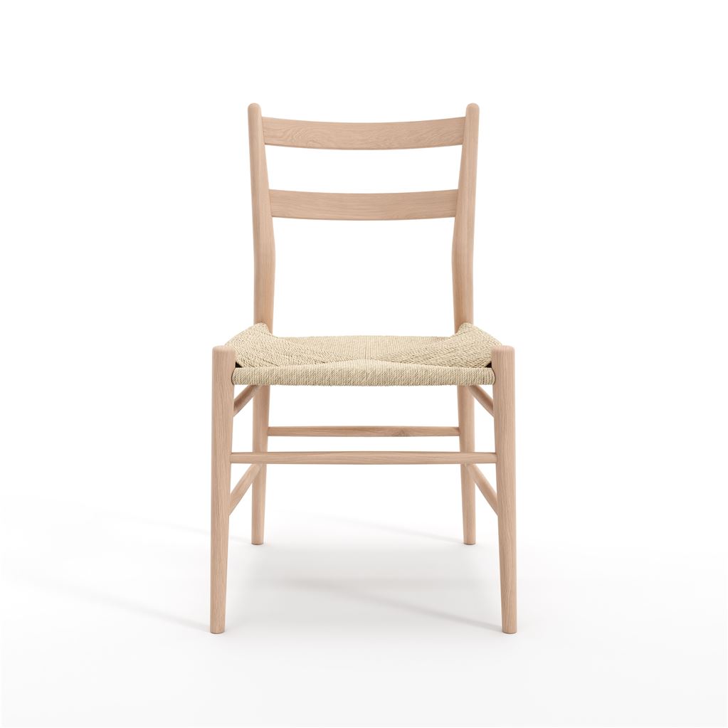 Sibast Esszimmerstuhl Nr. 59, Sitzhöhe: 45 cm – Weiß geölte Eiche/Papierkordel-Gewebe, Natur