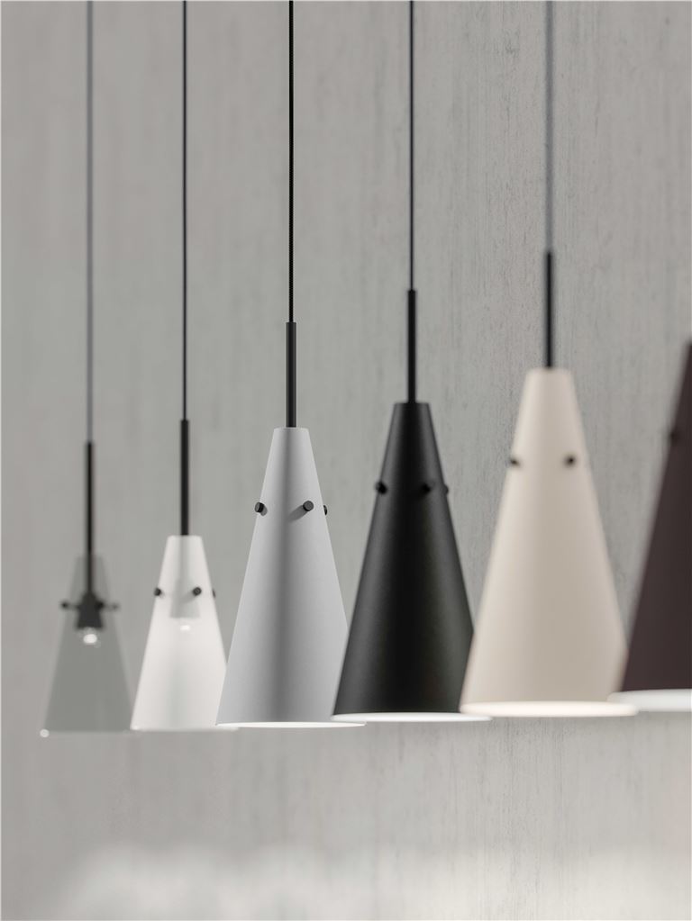 Einfache und elegante Lampe von Stellar Works. Das klassische Äußere der Lampe macht es möglich dass es in die meisten Häuser und Innenräume passt. Die eigentliche Konstruktion der Lampe ist Teil ihres Äußeren und verleiht ihr einen ehrlichen und einfachen Ausdruck. Benutzen Sie die Lampe über dem Esstisch oder in der Küche und fügen Sie je nach Beleuchtungsbedarf x Anzahl Lampen hinzu. Die Yama-Serie ist in verschiedenen Größen und Farben erhältlich, sodass Sie die Lampen ganz nach Ihren Wünschen und Bedürfnissen unterschiedlich kombinieren können. Der Name der Lampe Yama bedeutet auf Japanisch Berg.