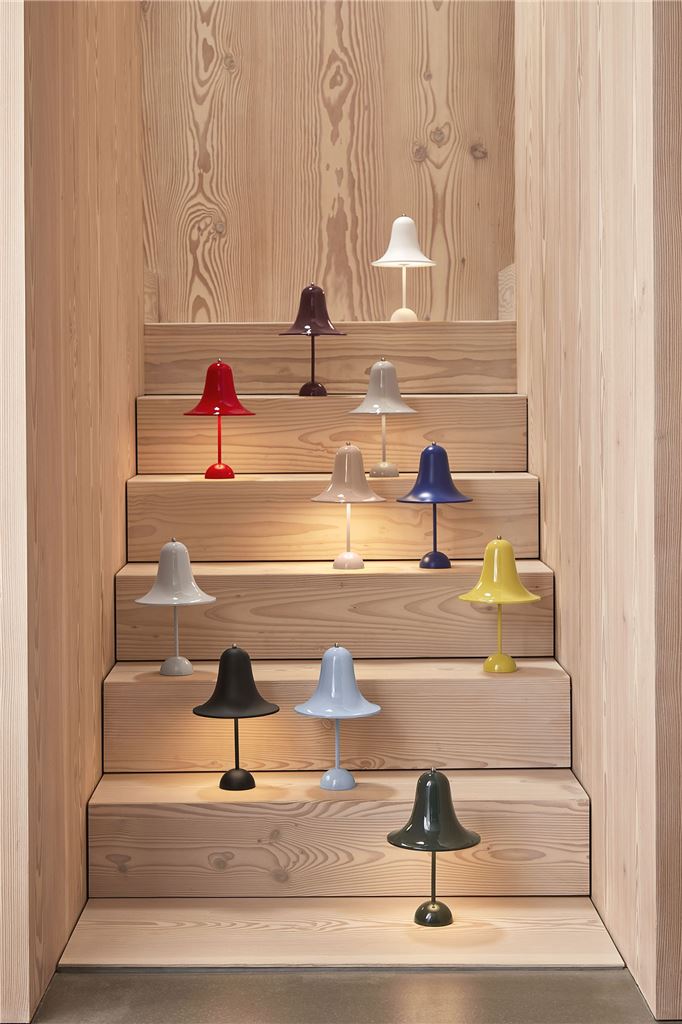 Die neuen Pantop-Tischlampen und -Pendelleuchten basieren auf Verner Pantons tiefem Verständnis von Farben und ihrer Fähigkeit, die Stimmung zu beeinflussen. Das Design ist elegant, klassisch und kommt durch die edlen neuen Farben besonders gut zum Ausdruck. Jede Farbe wird sorgfältig ausgewählt, um eine moderne Farbpalette zu schaffen. Die neuen Farben ergänzen sich aufs Feinste und lassen Raum für endlose Kombinationen.