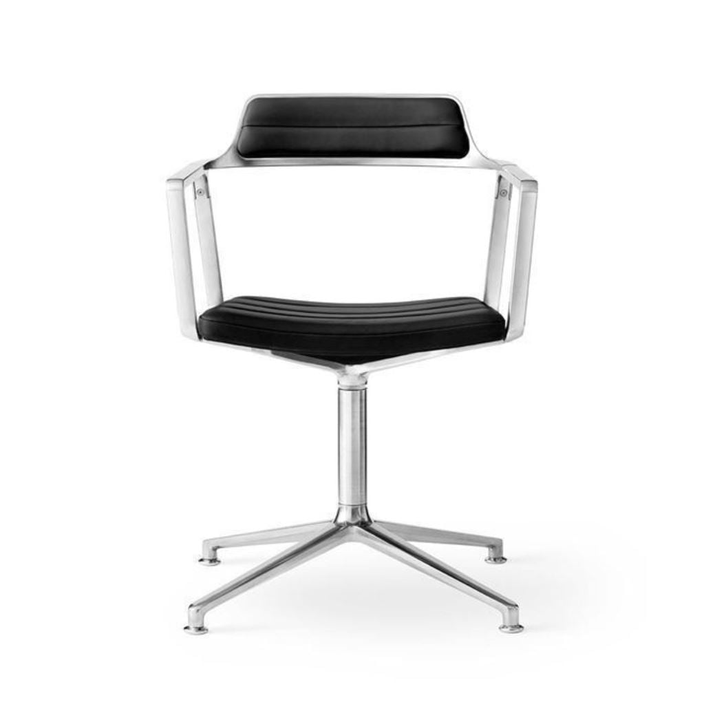 Vipp 452 Drehstuhl-Gleiter – Alu/schwarzes AnilinlederDer Drehstuhl ist eine Weiterentwicklung des Vipp-Stuhls, speziell für das Heimbüro oder in Besprechungsr