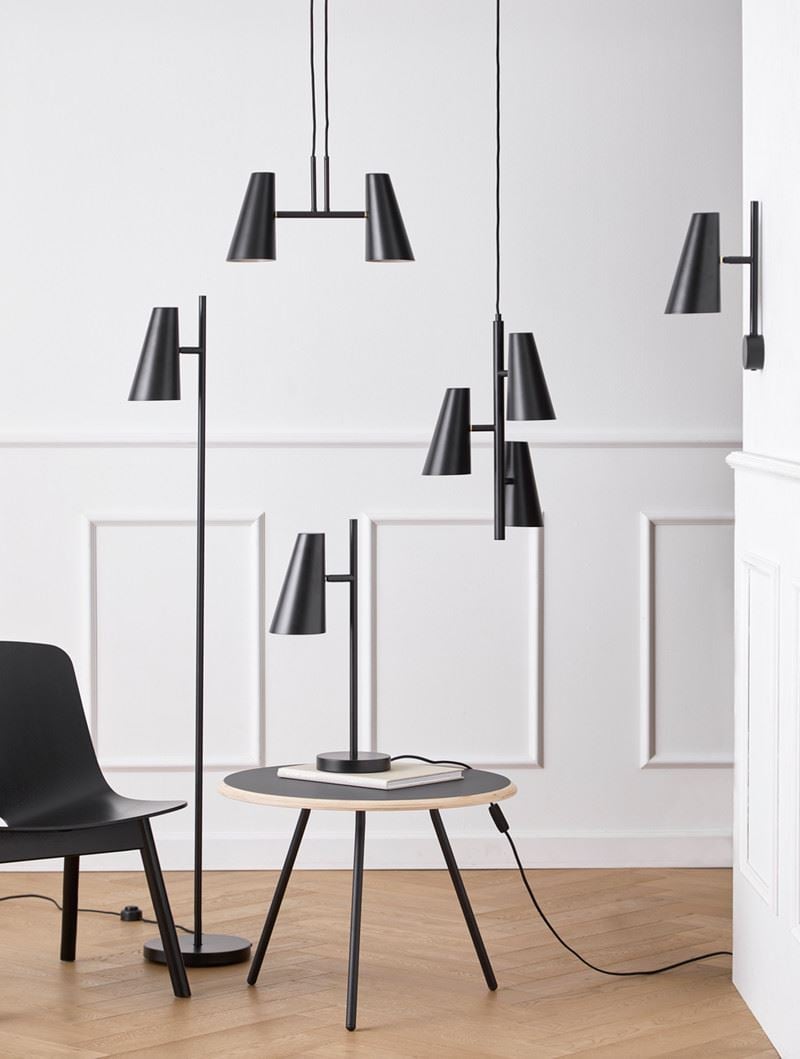 Die Cono-Serie besteht aus einer Wandlampe, einer Stehlampe, einer Tischlampe und zwei Pendelleuchten, die Ihnen reichlich Möglichkeiten bieten, verschiedene Lichtverhältnisse zu kombinieren Quellen untereinander
